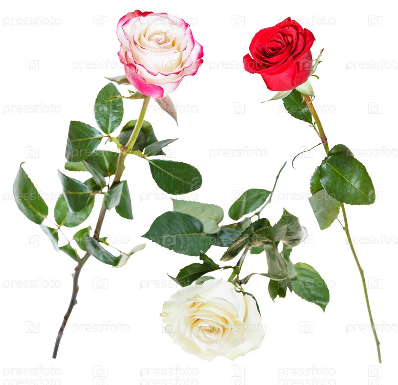 Набор из розовые, красные, белые розы цветы изолированные