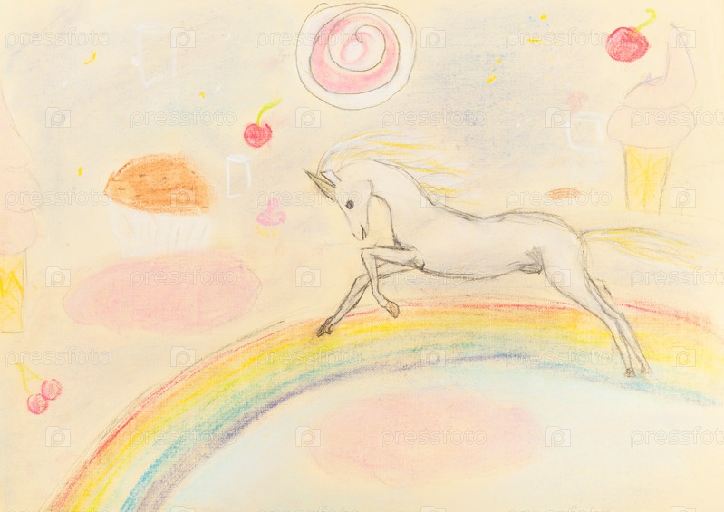 Сказочный единорог на радуге