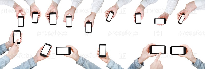 Набор рук с мобильными телефонами