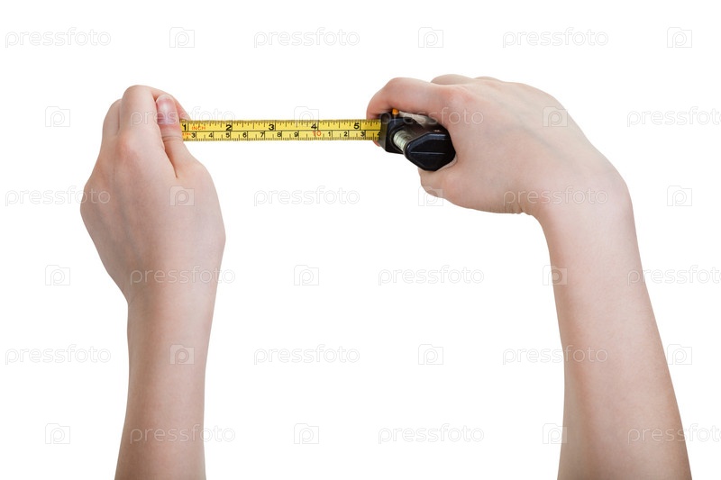 Женские руки с рулеткой, изолированные на белом фоне