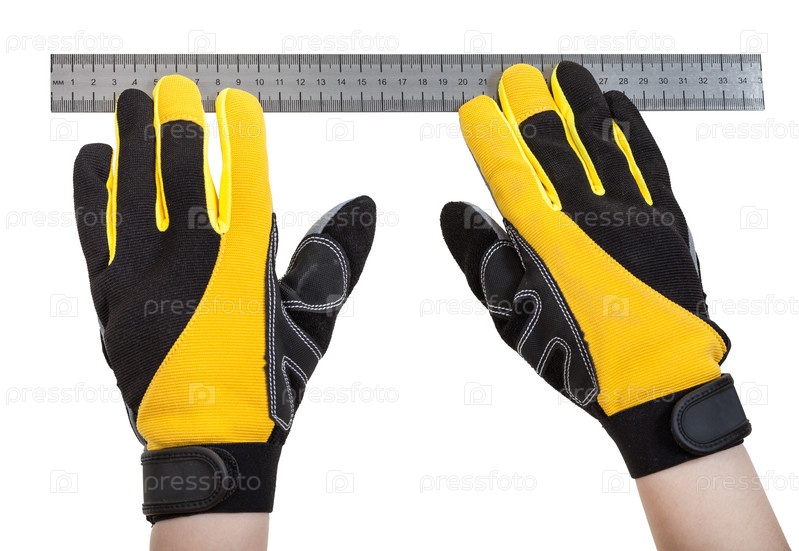 Строитель руки в безопасности светит с линейкой