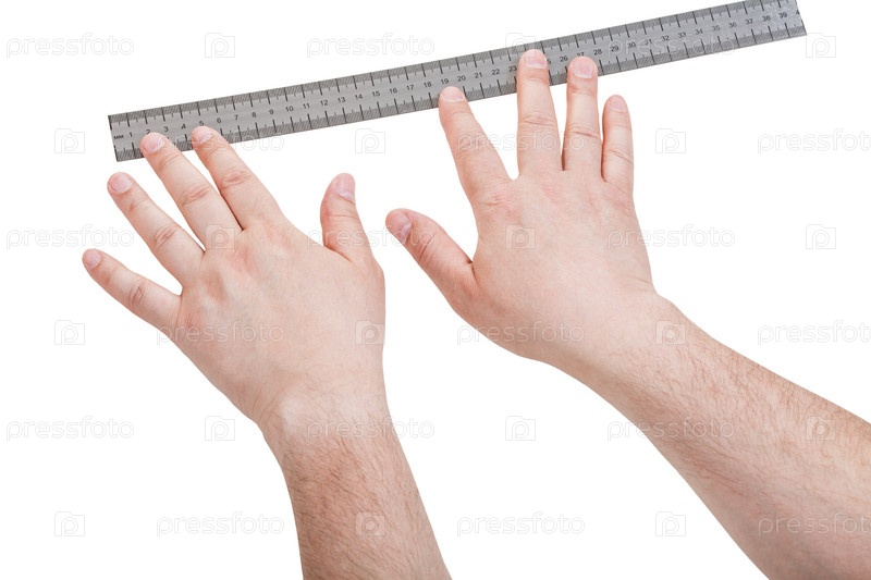 Мужская рука с линейкой измерения изолирована