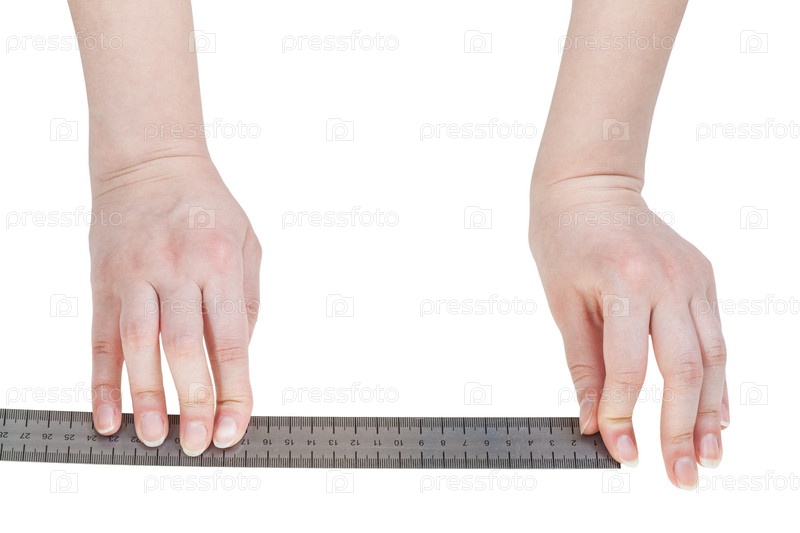 Женские руки с металлической линейки изолированные