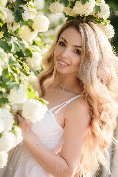 Блондинка в цветущем саду