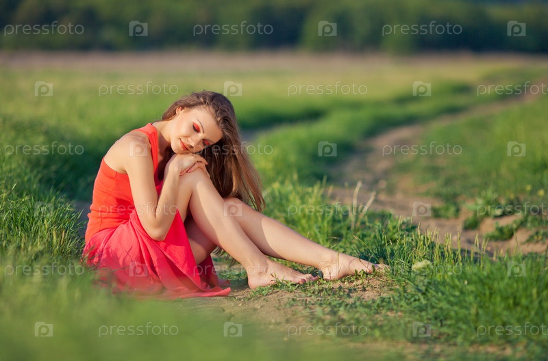 Девушка в ярком на поле