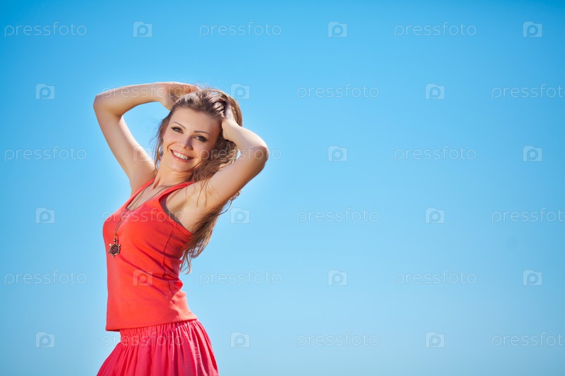 Девушка в ярком на поле