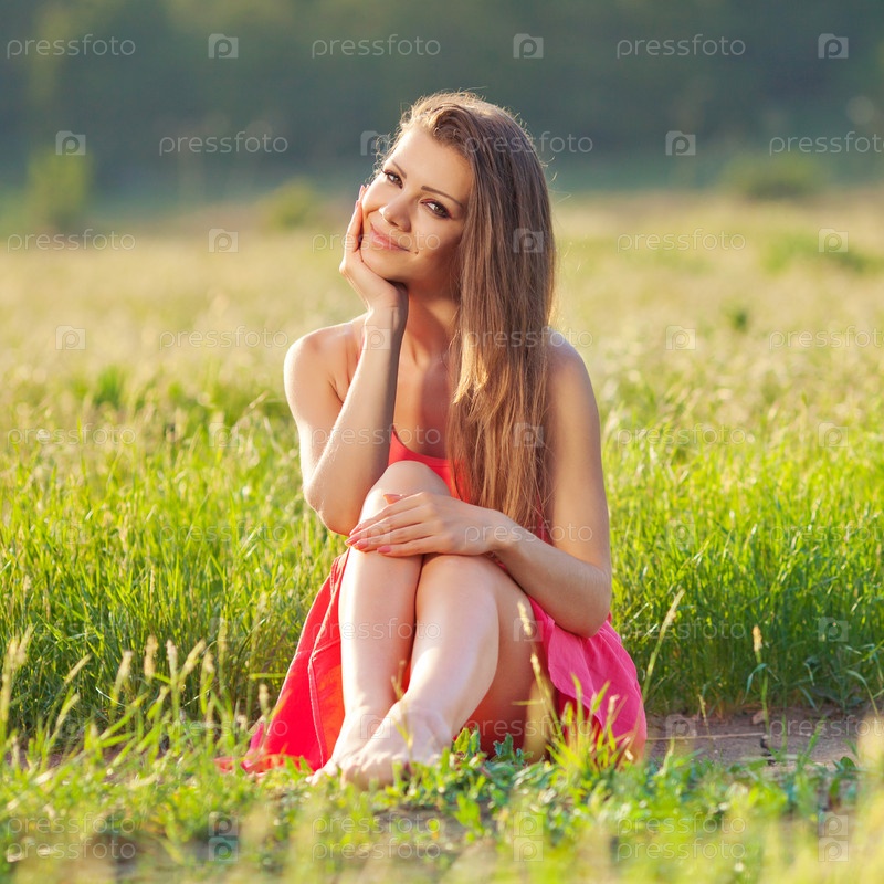 Девушка в ярком на поле