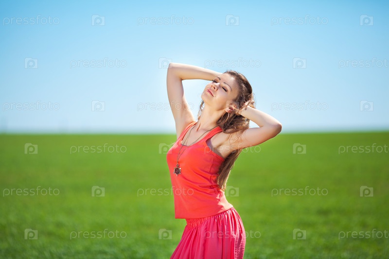 Девушка в ярком на поле