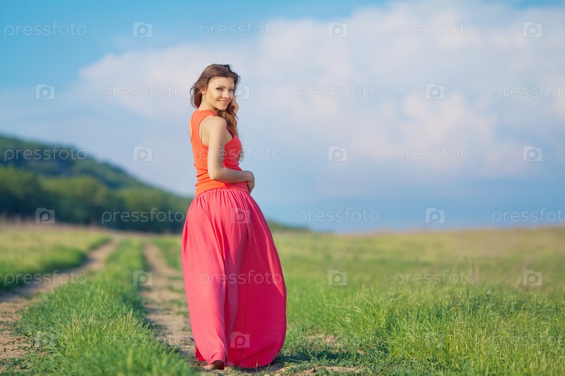 Девушка в ярком на поле