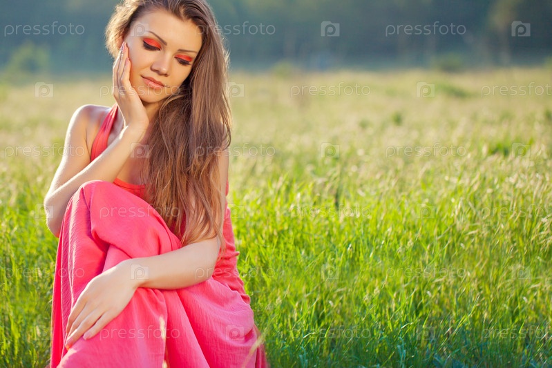 Девушка в ярком на поле