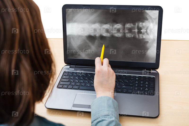 Студент анализирует рентгеновский снимок позвоночника