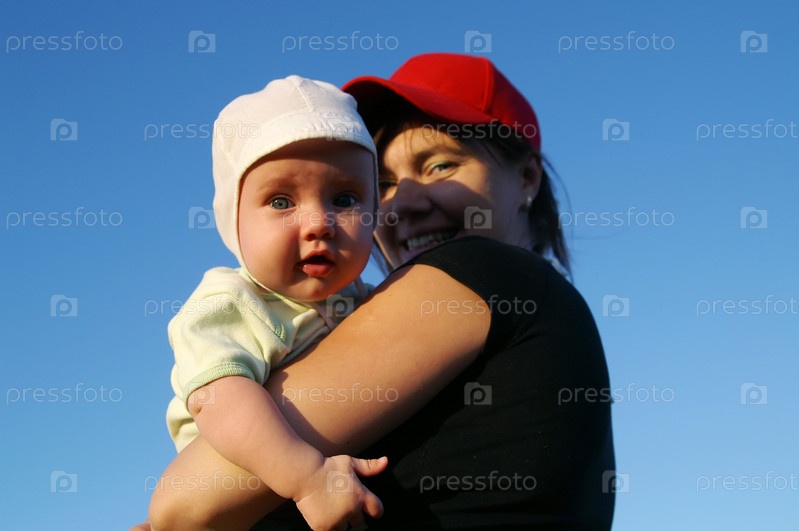 Ребенок с матерью на голубом небе