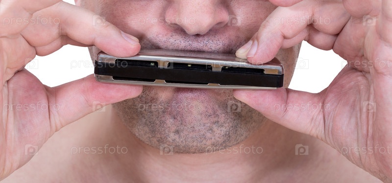 Музыкант играет на губной гармошке