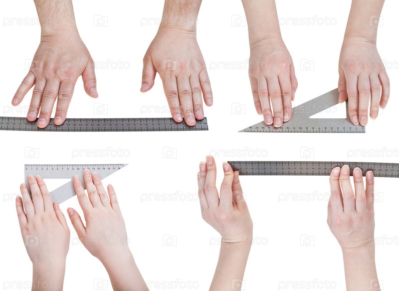 Руки с металлической линейкой