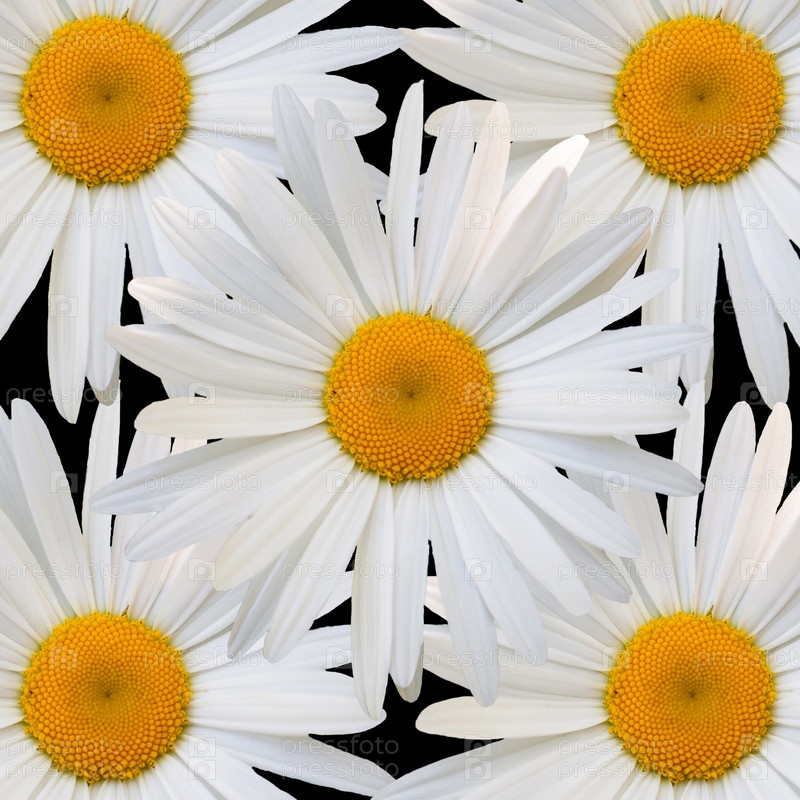 Белые ромашки черном фоне