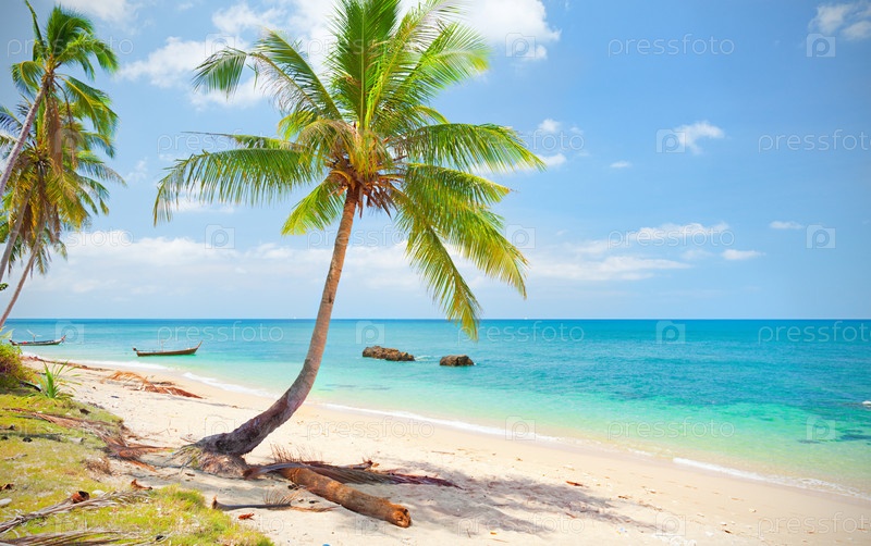 Тропический пляж с кокосовой пальмы. Кох Ланта, Таиланд