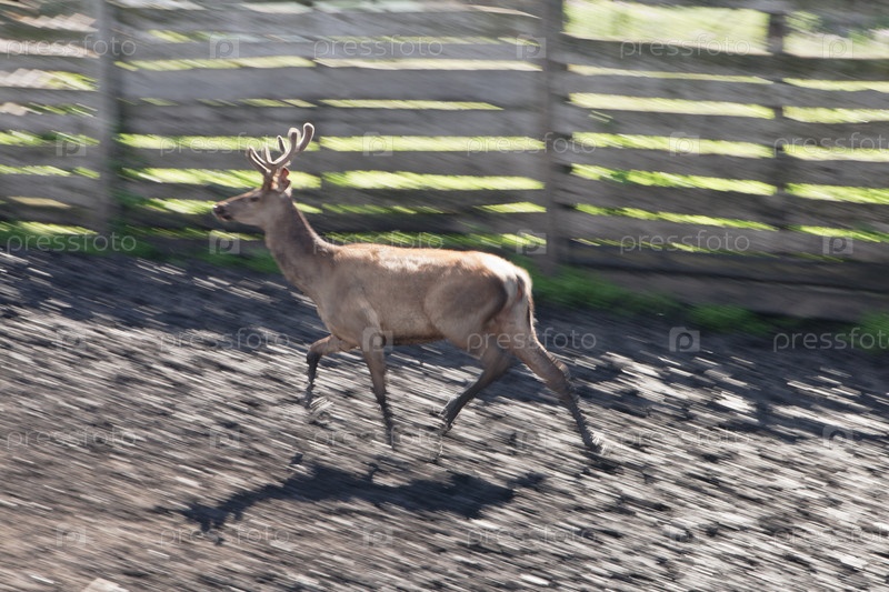 Марал бежит в загоне