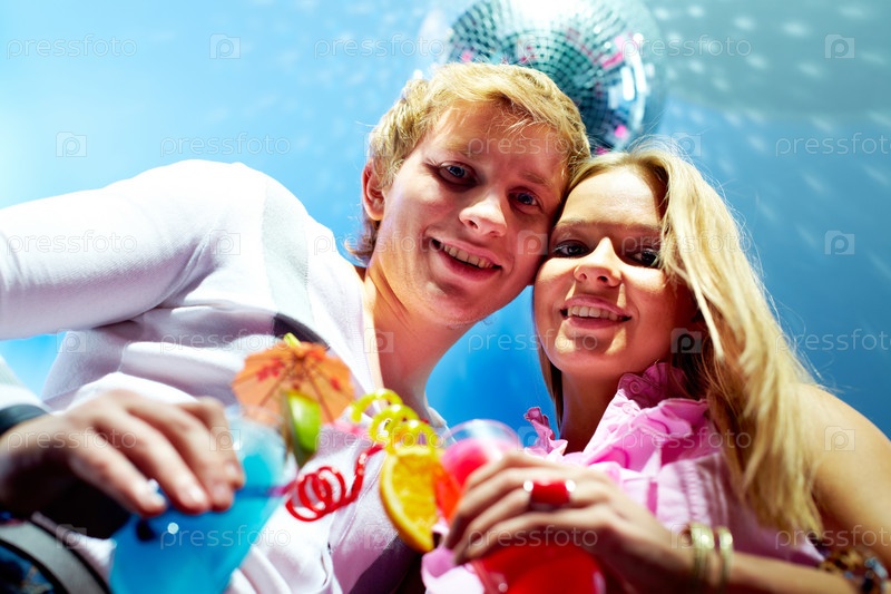 Молодая пара с коктейлями