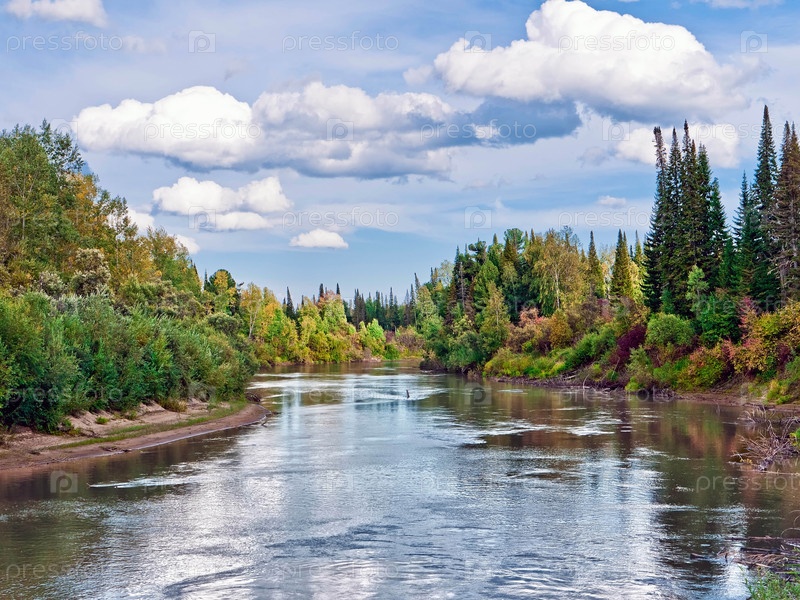 Осенние деревья по берегам реки
