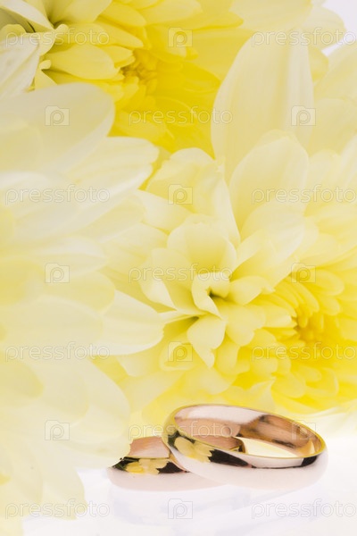 Желтые цветы и золотые обручальные кольца