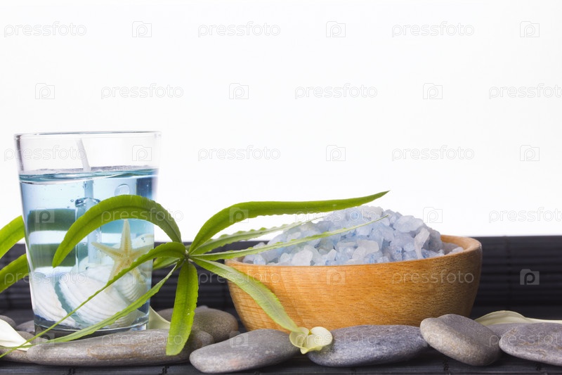 Зеленые листья, камни и соль для ванной