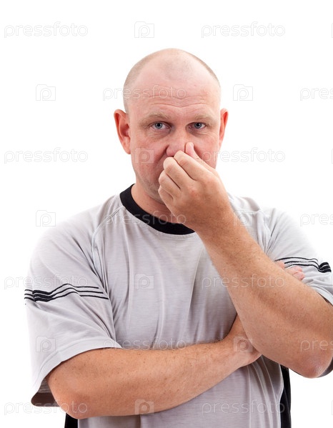 Портрет лысого мужчины на белом фоне