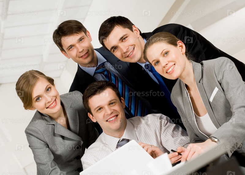 Портрет нескольких успешных сотрудников, смотрящих на камеру и улыбающихся