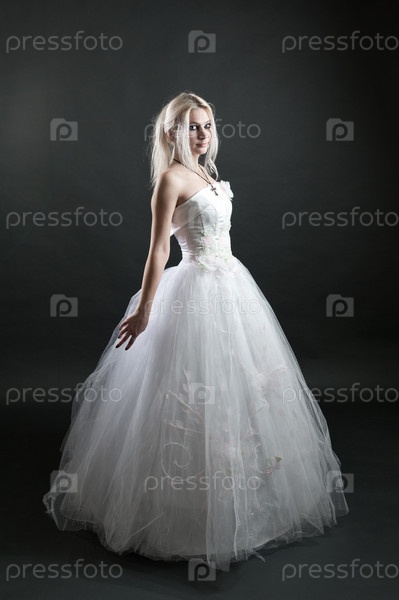 Красивая молодая девушка в свадебном платье на черном фоне