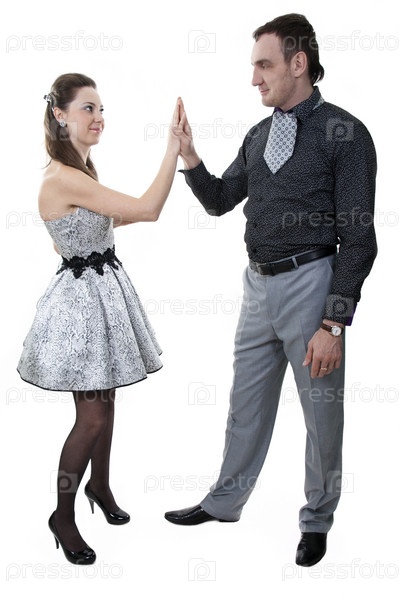 Влюбленная пара в нарядной одежде на белом фоне