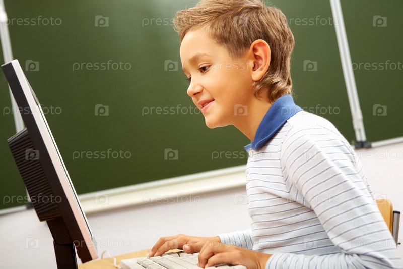 Мальчик за компьютером в классе