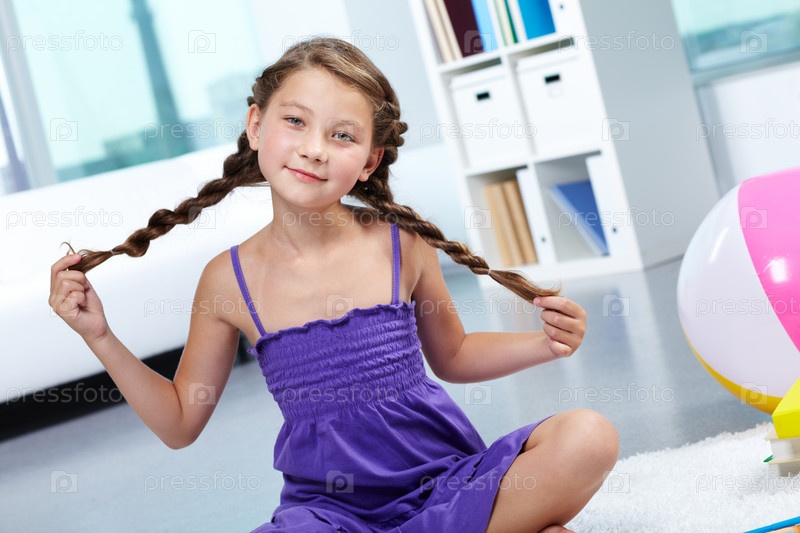 Девочка сидит на полу в комнате