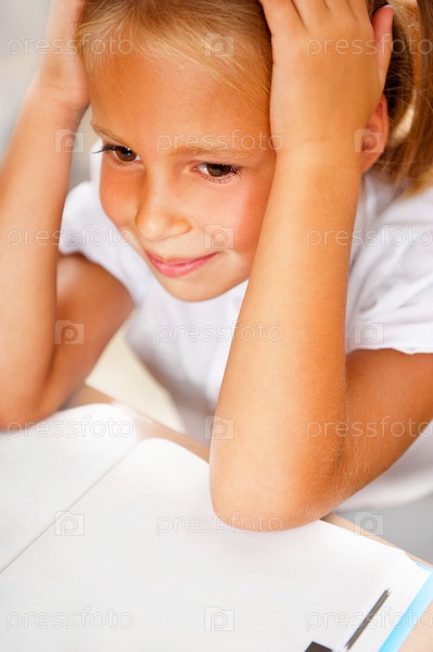 Уставшая школьница держится руками за голову