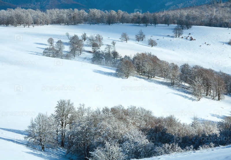 Первый снег в буковой роще в горах