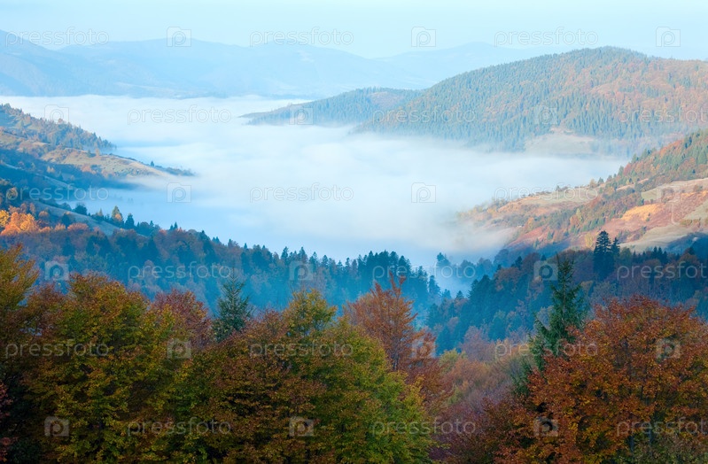 Туманное утро в Карпатских горах, Украина