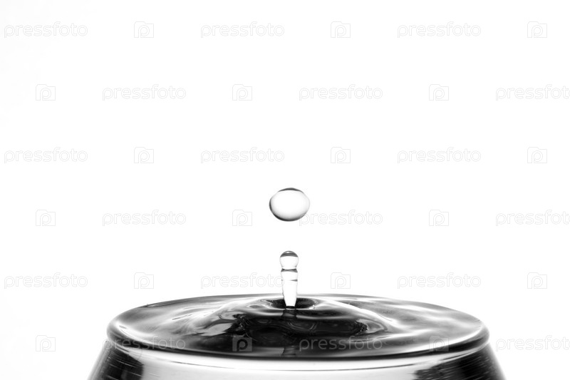 Падающие капли воды на белом фоне