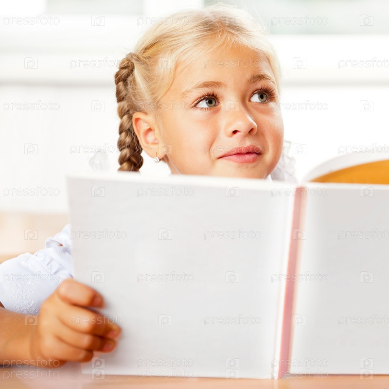 Школьница читает книгу