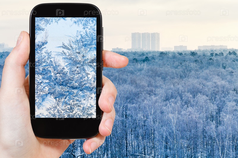 Человек фотографирует зимний лес