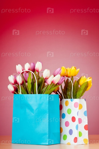 Бумажные пакеты с тюльпанами