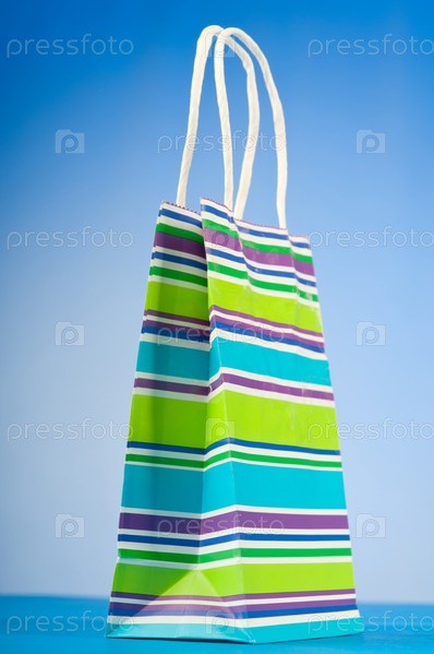 Красочный бумажный пакет на синем фоне
