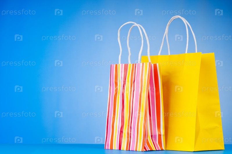 Красочные бумажные пакеты на синем фоне