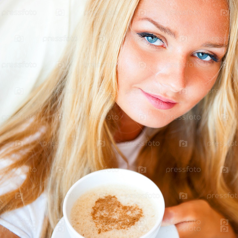 Молодая женщина с чашкой кофе с изображением сердца на пене