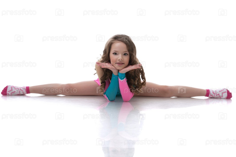 Спортивная девочка сидит на шпагате