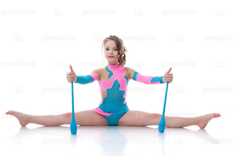 Спортивная девочка в гимнастическом купальнике готовится к выступлению