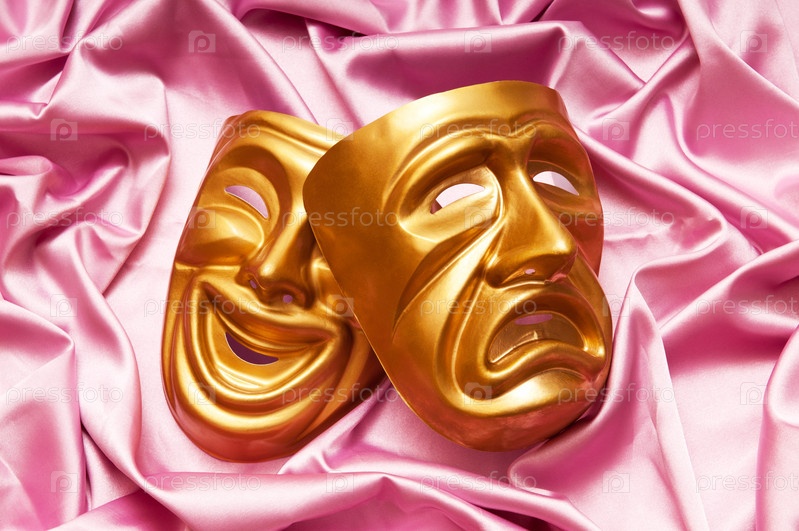 Театральные маски на розовой ткани