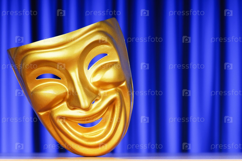Театральная маска на фоне занавеса