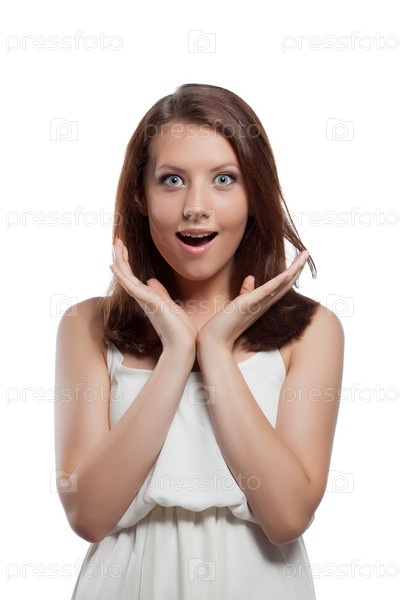Портрет удивленной девушки крупным планом