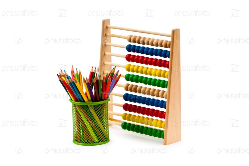 Счеты и стаканчик с цветными карандашами