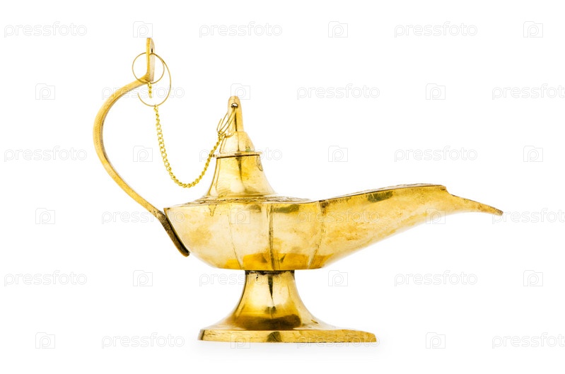 Старинная антикварная лампа на белом фоне