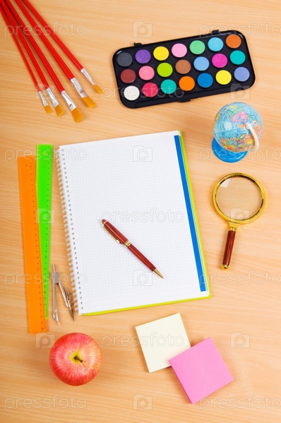 Детские школьные принадлежности на столе