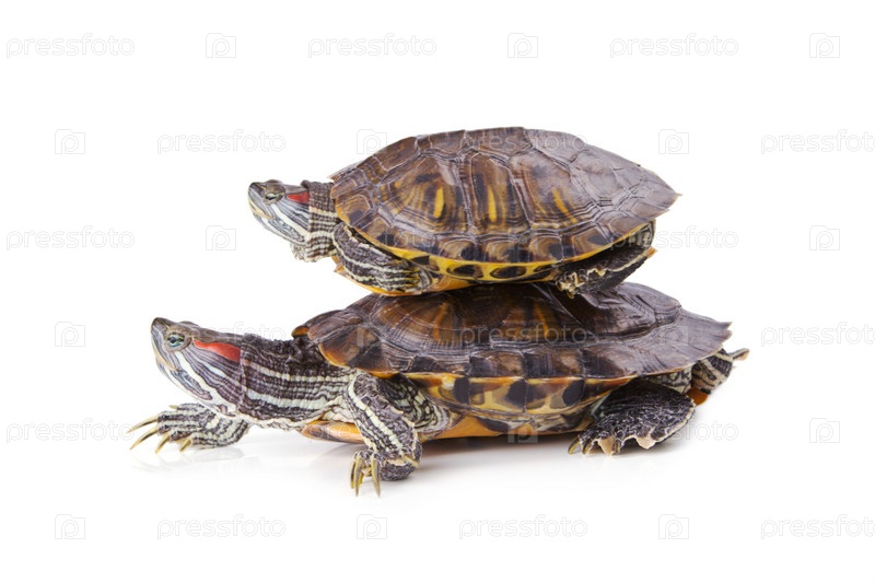 Две черепахи на белом фоне